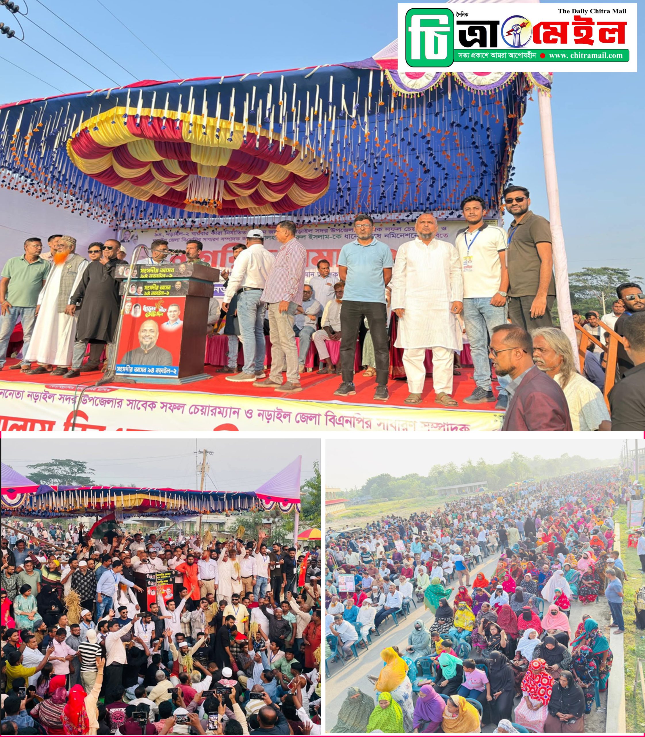 জনস্রোতে উচ্ছ্বাস নড়াইলে আলহাজ্ব মনিরুল ইসলামের ধানের শীষের মনোনয়নের দাবিতে নাগরিক জনসভা