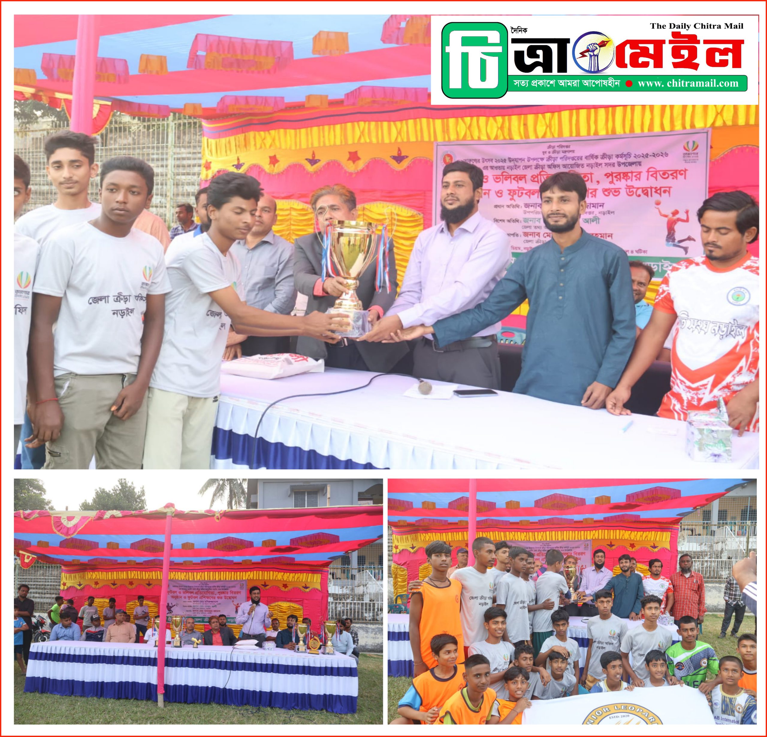ক্রীড়া পরিদপ্তর যুব ও ক্রীড়া মন্ত্রনালয়ের অধিদপ্তরের তারুণ্য উৎসব ২০২৫ উদ্যাপন উপলক্ষে ক্রীড়া পরিদপ্তরের বার্ষিক কর্মসূচি ২০২৫-২০২৬ এর আওতায় নড়াইলে ফুটবল ও ভলিবল , পুরস্কার বিতরণ অনুষ্ঠান ও ফুটবল প্রশিক্ষনের উদ্বোধন করা হয়েছে। বুধবার (১২ নভেম্বর ) নড়াইল বীরশ্রেষ্ঠ নূর মোহম্মদ ষ্টেডিয়ামে এ সকল অনুষ্ঠান অনুষ্ঠিত হয়েছে।