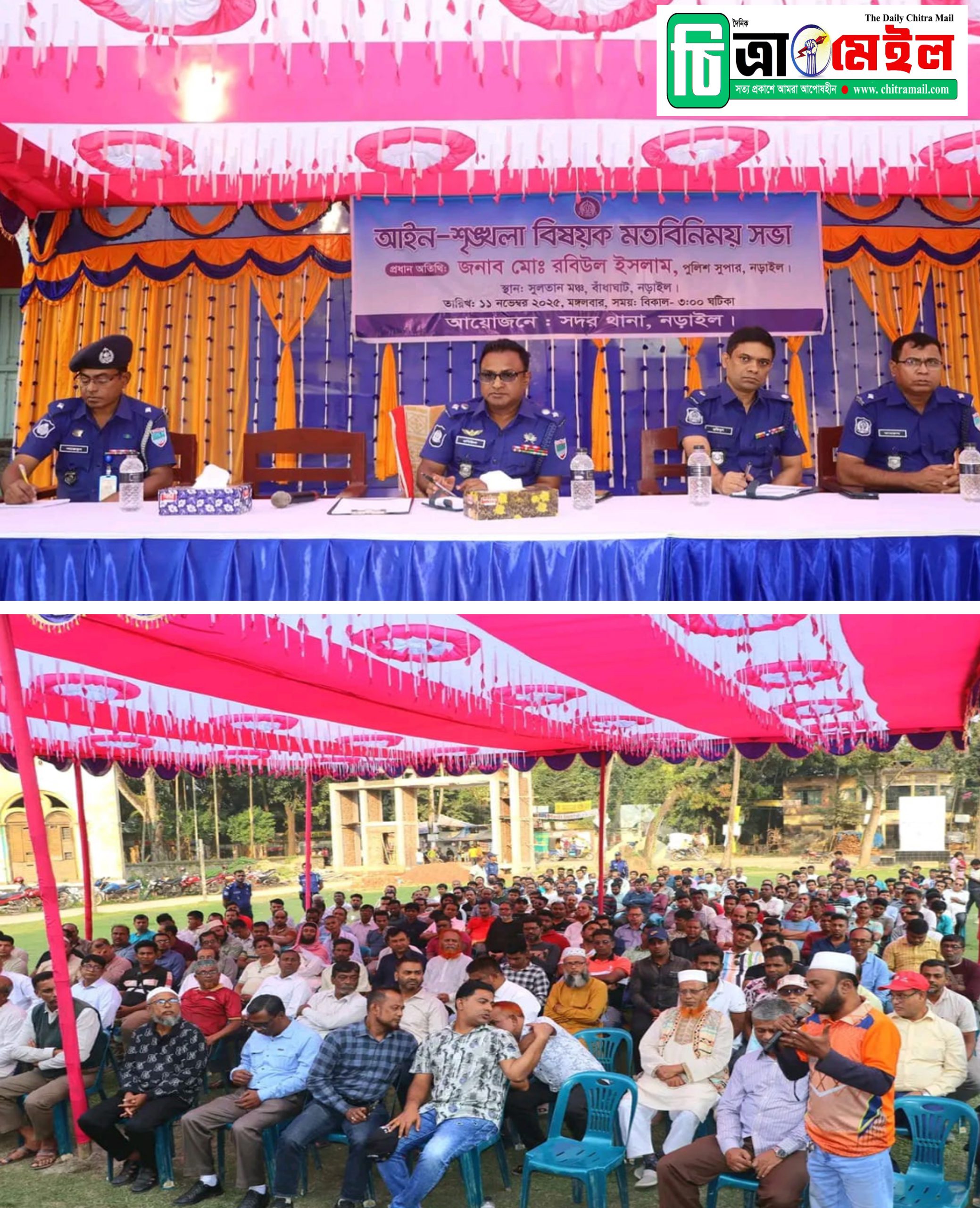 নড়াইলে সদর থানায় সুলতানমঞ্চে আইনশৃঙ্খলা বিষয়ক মতবিনিময় সভা