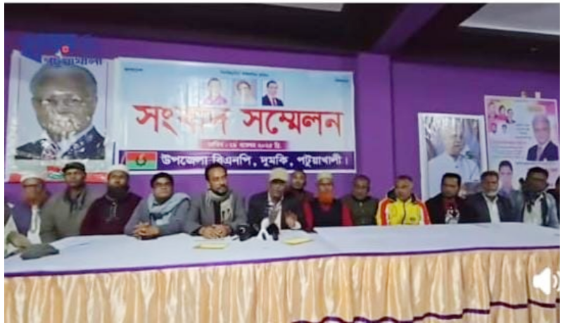 বিএনপির ভাইস চেয়ারম্যান সাবেক মন্ত্রী এয়ার ভাইস মার্শাল (অব:) আলহাজ্ব আলতাফ হোসেন চৌধুরীকে নিয়ে বিভ্রান্তীমূলক বক্তব্যের প্রতিবাদে সংবাদ সম্মেলন করেছেন দুমকী উপজেলা বিএনপি। শনিবার সন্ধ্যা ৭ টায় পবিপ্রবি মেইন গেট সংলগ্ন উপজেলা বিএনপির অস্থায়ী কার্যালয়ে এ সংবাদ সম্মেলন অনুষ্ঠিত হয়। উপজেলা বিএনপির সাবেক ভারপ্রাপ্ত সাধারণ সম্পাদক ও সদস্য মোঃ জসিম উদ্দিন হাওলাদার এবং সাবেক যুগ্ম আহবায়ক মোঃ মতিউর রহমান দিপু স্বাক্ষরিত এক লিখিত বক্তব্য পাঠ করেন মতিউর রহমান দিপু। তিনি অভিযোগ করে বলেন, ২৭নভেম্বর পটুয়াখালী জেলা বিএনপি কর্তৃক আয়োজিত সংবাদ সম্মেলনে পটুয়াখালী-১ আসনের বিএনপি মনোনীত প্রার্থী আলহাজ্ব আলতাফ হোসেন চৌধুরীকে নিয়ে অসত্য, বানোয়াট ও বিভ্রান্তীমূলক বক্তব্য প্রদান করা হয়েছে। আলতাফ হোসেন চৌধুরী বিগত ফ্যাসিষ্ট আওয়ামী লীগ সরকারের আমলে ২৫ টি মিথ্যা মামলা মাথায় নিয়ে ১৬ বছর নেতাকর্মীদের পাশে ছিলেন। তার পটুয়াখালীস্থ বাসভবনে আওয়ামী সন্ত্রাসী বাহিনী অসংখ্য বার হামলা করেছে। তিনি ১/১১ এর সময় বড় পুকুরিয়া সংক্রান্ত মিথ্যা মামলায় বিএনপি চেয়ারপার্সন বেগম খালেদা জিয়ার সাথে - দীর্ঘ ১৯ মাস এবং ২০২৪ সালে প্রহসনের - নির্বাচনের পূর্ববর্তী সময়ে ষড়যন্ত্রমূলক মিথ্যা - মামলায় সাড়ে ৫মাস কারাগারে ছিলেন। - বিগত সরকারের সময় তিনি বিভিন্ন মিথ্যা - মামলায় ৮০০বারের অধিক সময় তিনি - আদালতে হাজিরা দিয়েছেন।