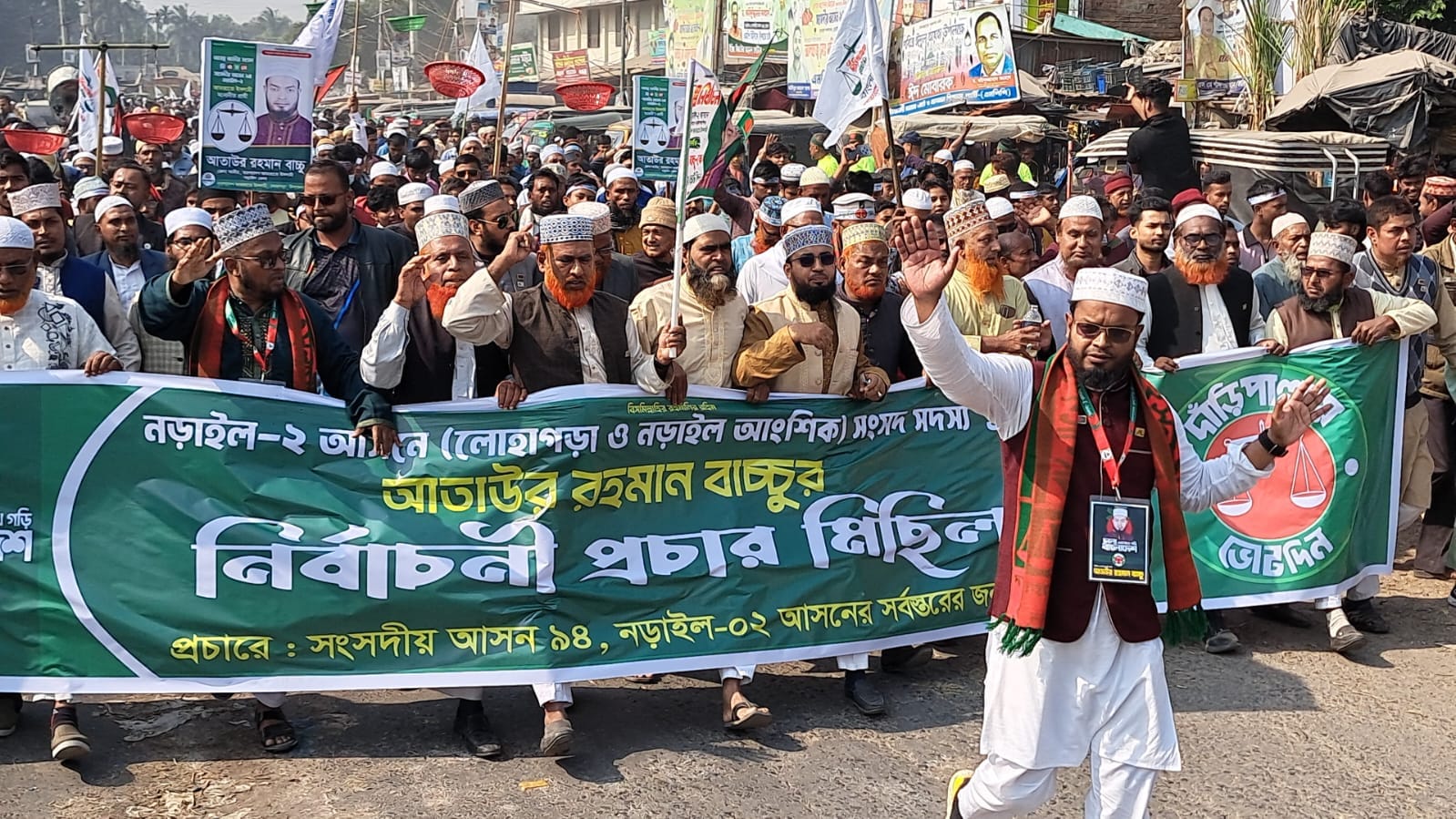 নড়াইল-২ আসনে বাংলাদেশ জামায়াতে ইসলামী মনোনীত সংসদ সদস্য প্রার্থী ও নড়াইল জেলা আমির আতাউর রহমান বাচ্চুর নেতৃত্বে প্রচার মিছিল ও সমাবেশ অনুষ্ঠিত হয়েছে।