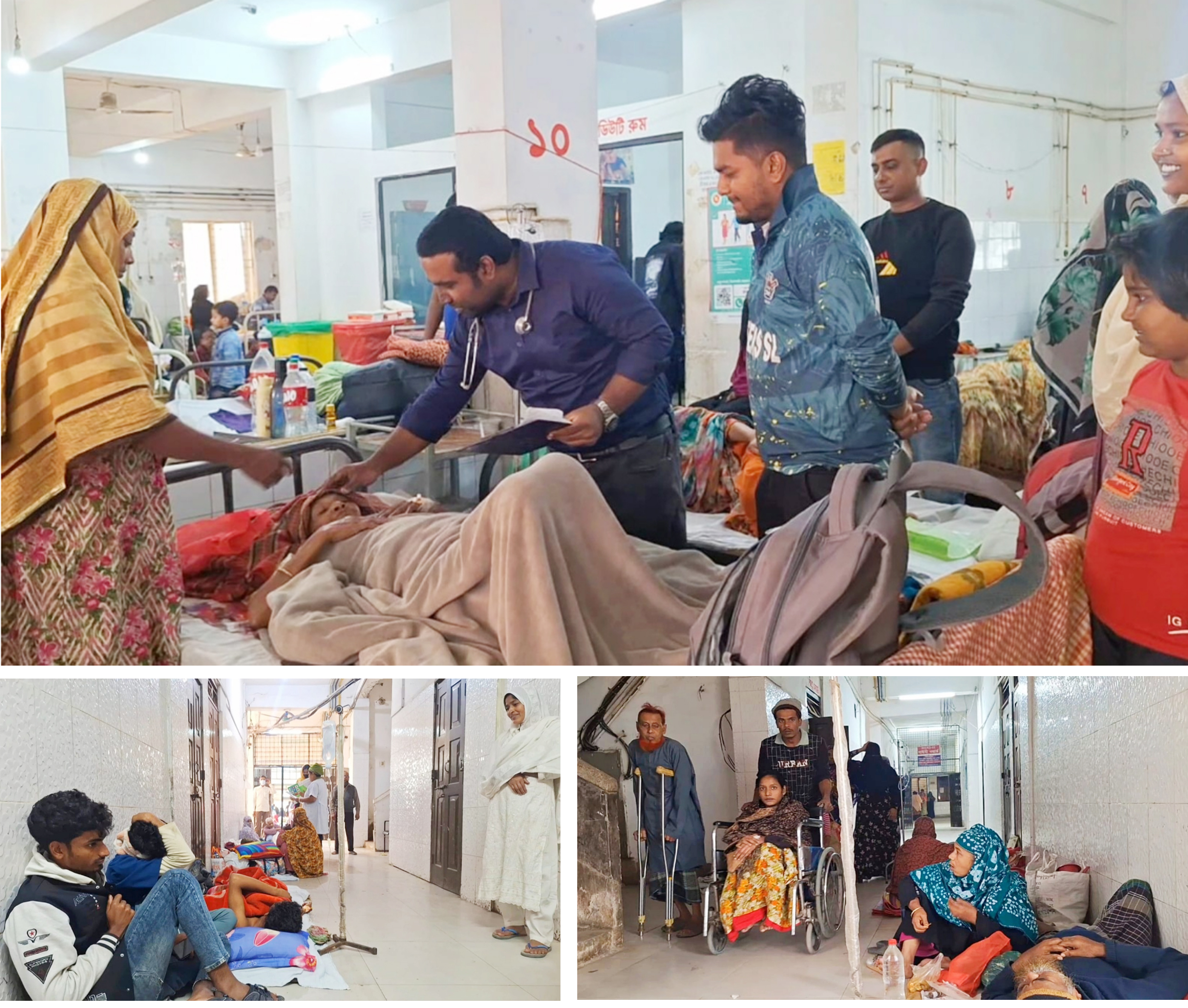 হাসপাতলটিতে সেবা নিতে আসা রোগীর স্বজনরা জানান, হাসপাতালটির ফ্লোর, করিডোর, সিঁড়ির তলায় মাদুর আর চাদর মেলে রোগী নিয়ে অবস্থান করছেন অন্তত ২৫০ রোগীর স্বজনরা। একদিকে, শীতের প্রকোপ অন্যদিকে রোগ সংক্রমনের শঙ্কা নিয়ে অনেকটা নিরুপায় হয়েই একটু উন্নত চিকিৎসার আশায় মানবেতরভাবে হাসপাতালে অবস্থান করছেন তারা।