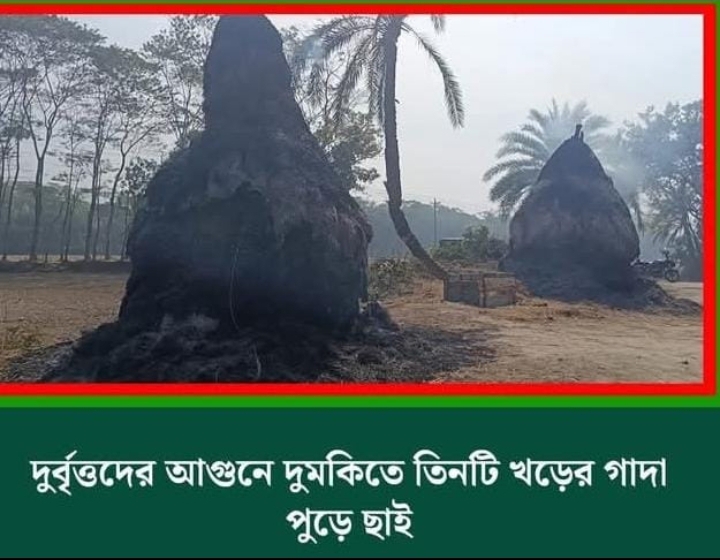 দুর্বৃত্তদের আগুনে দুমকিতে তিনটি খড়ের গাদা পুড়ে ছাই